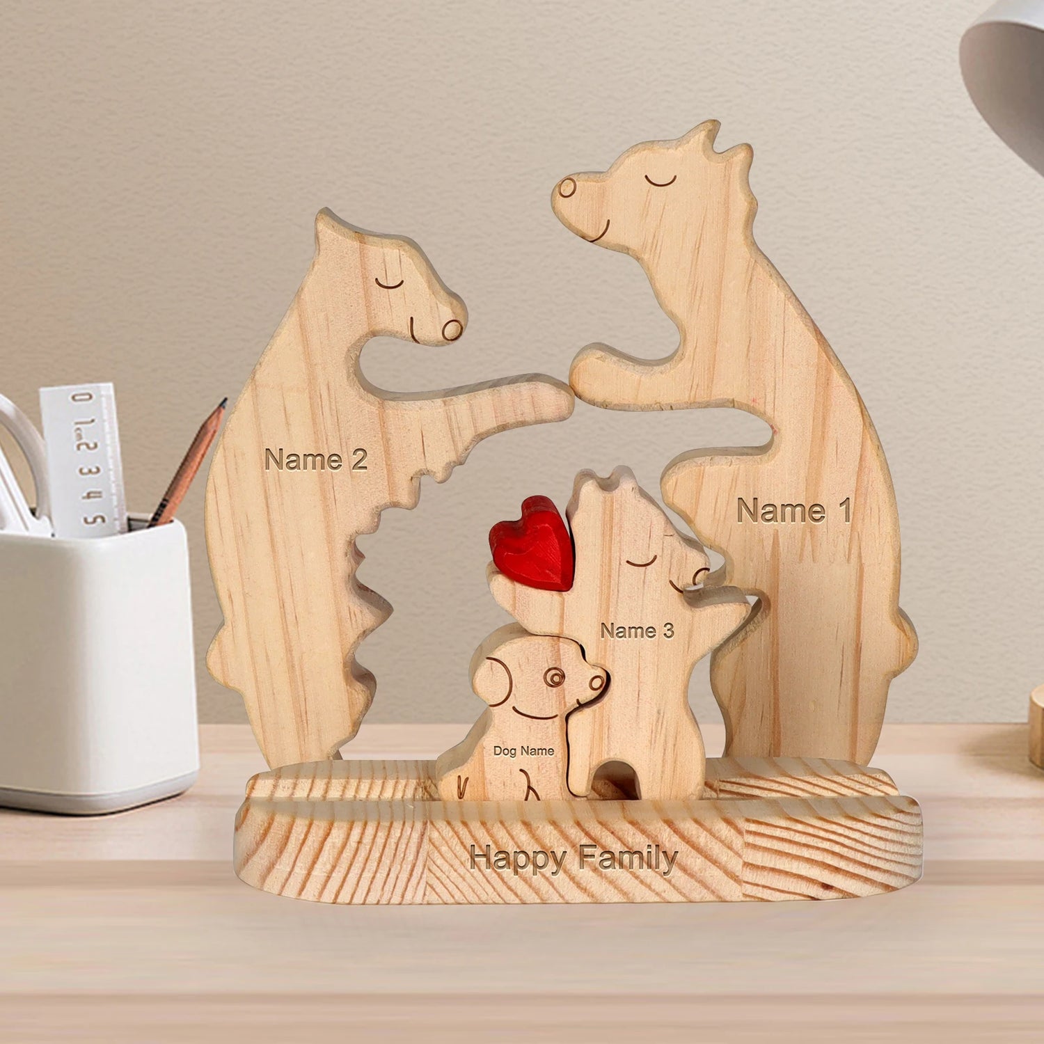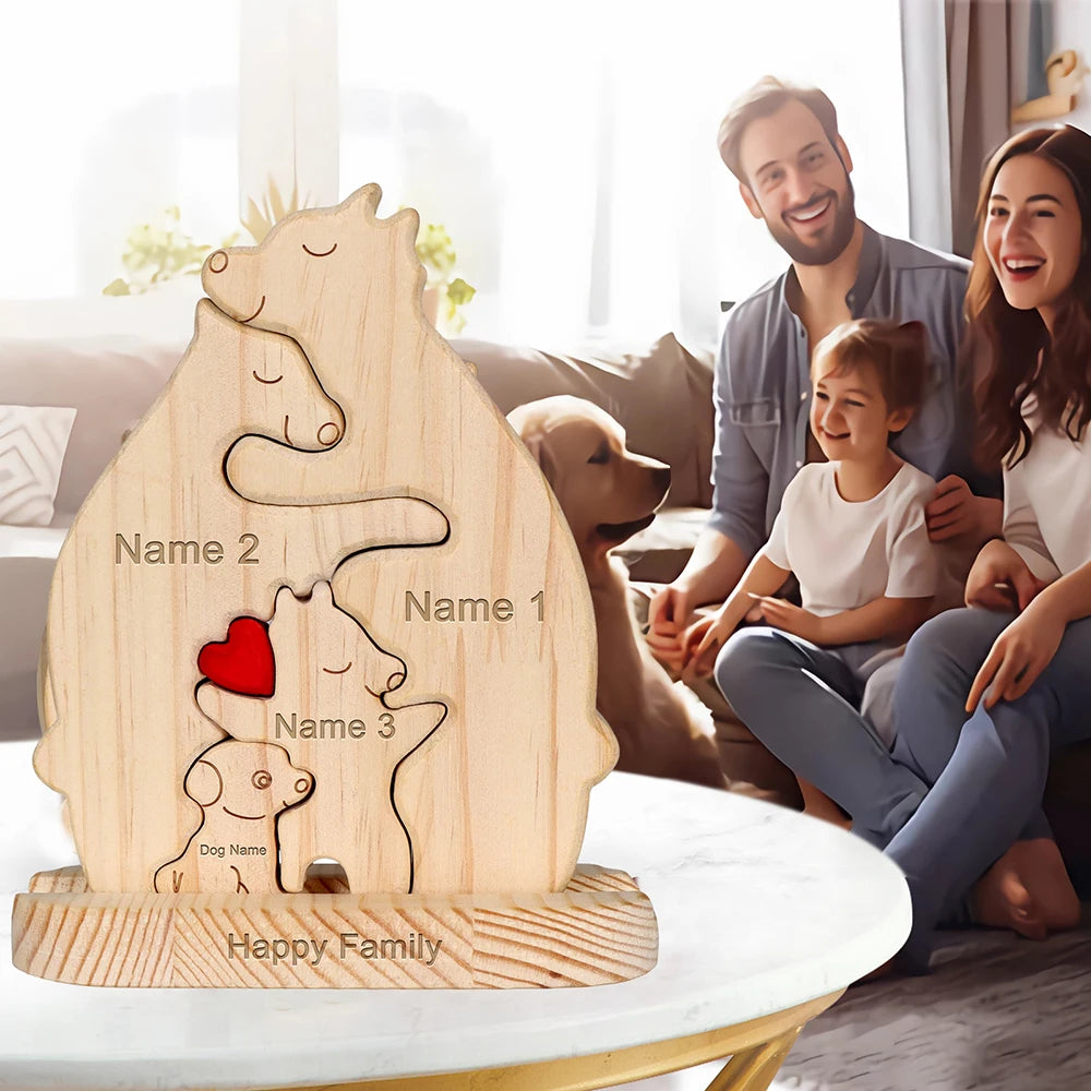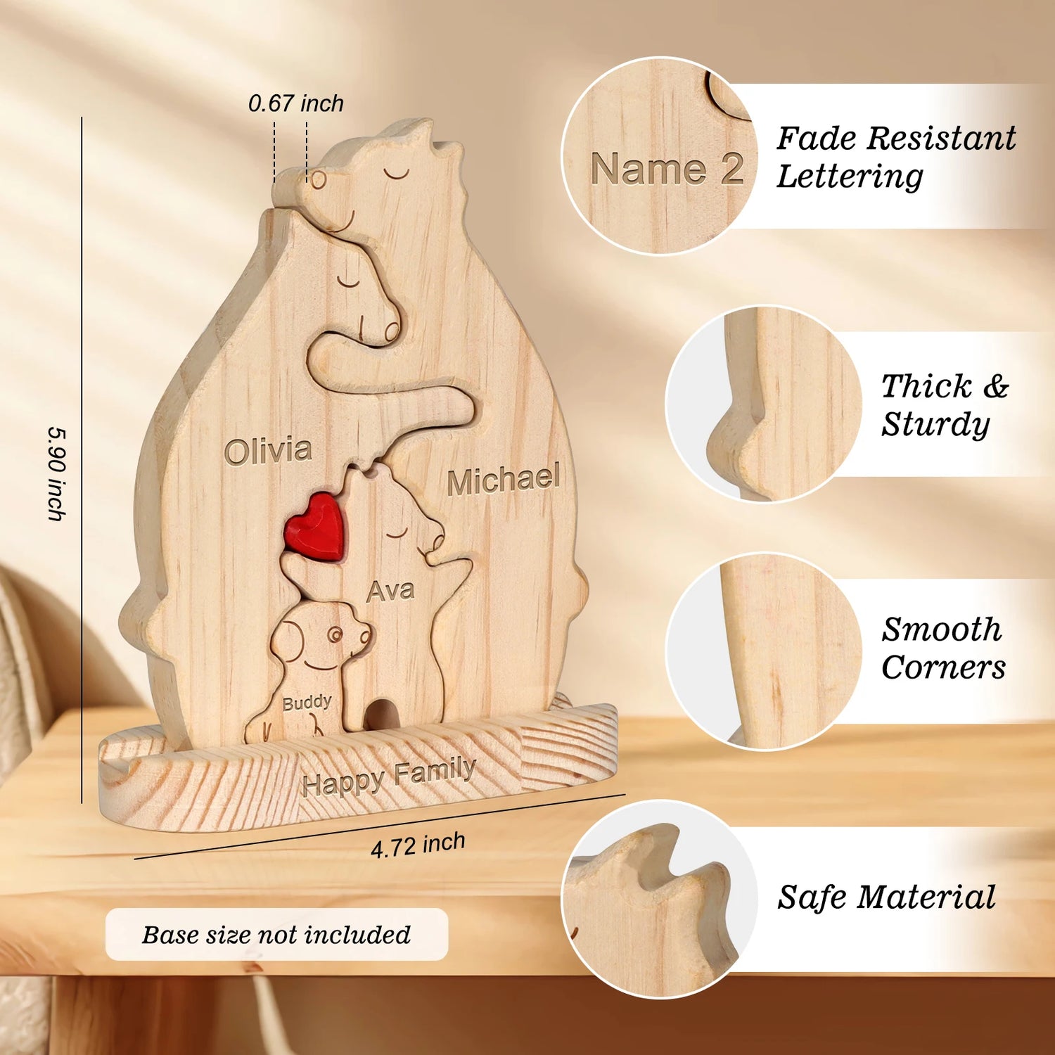 Introducing a heartwarming solution: Our Custom Carved Bear Family Puzzle. Handcrafted from quality wood, this delightful piece allows you to display your family's names with pride. Assembling this charming bear brings a touch of rustic elegance to your home and reinforces family connections. Ideal for diverse occasions from anniversaries to birthdays, its intricate design transforms your living space, making it truly yours while creating unforgettable memories.